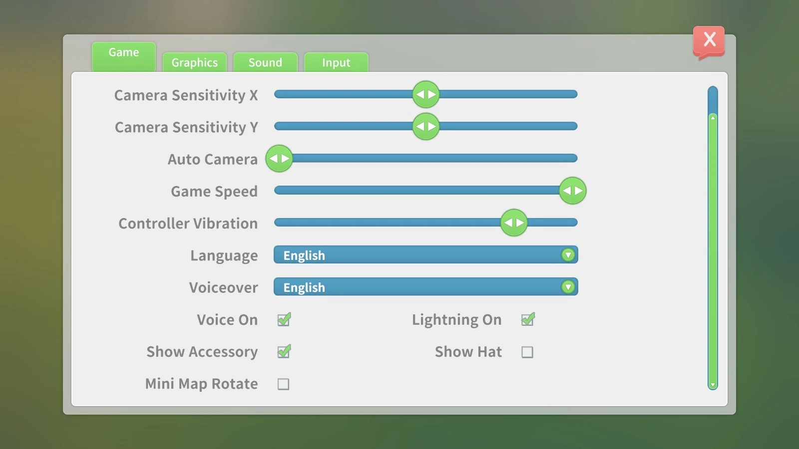 If an option only has a checkbox, then the option is on if there is a green check mark and off if there is no check mark. If an option has a slider, moving the slider all the way to the left turns the option completely off or to its minimum setting, while turning the slider all the way to the right turns the option completely on to its maximum setting.