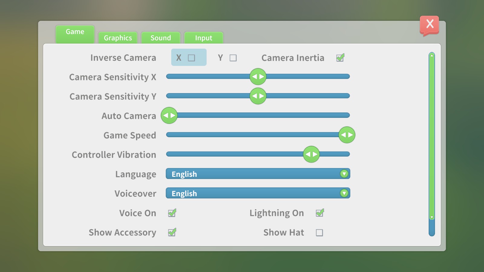 If voiceovers are not desired, the Voice On option can be deselected to turn all character voices off.